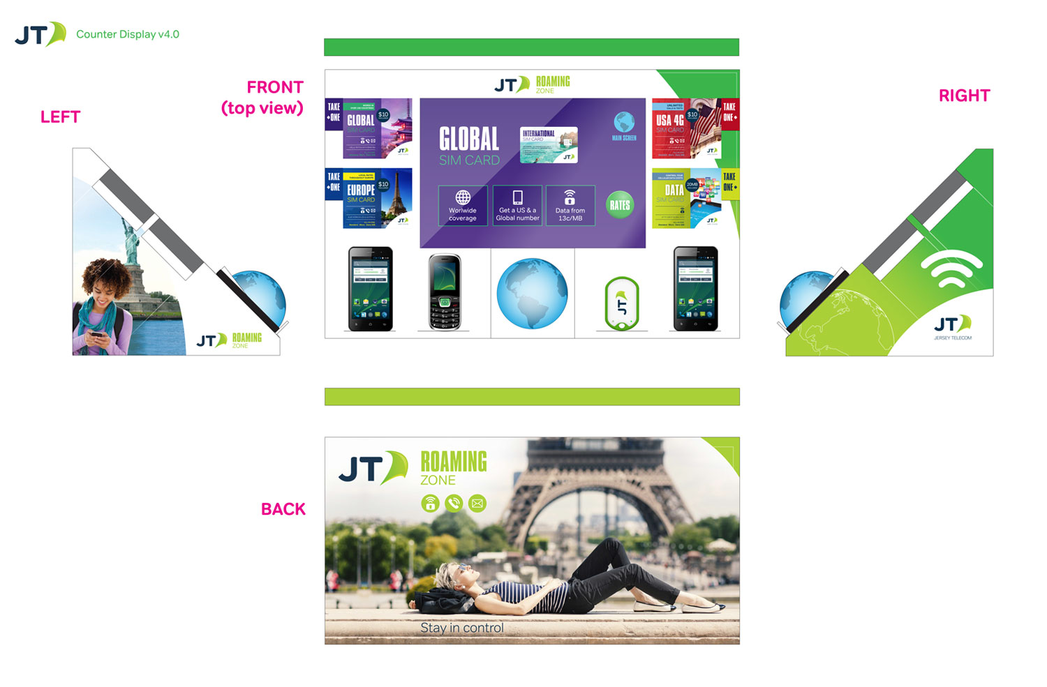 The following photos show the Roaming Zone POS on display in Jersey UK, Atlanta GA and Dallas TX.